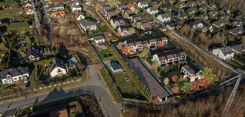 Domy powstają w oparciu o nowoczesne technologie, które podnoszą komfort życia i pozwalają ograniczać koszty eksploatacji. Budynki można łatwo przystosować do montażu fotowoltaiki, pomp ciepła, rekuperacji oraz systemów smart home. W standardzie mają ogrzewanie podłogowe. Zastosowano stolarkę okienną o podwyższonej izolacyjności termicznej i akustycznej, która ogranicza straty ciepła i poprawia komfort akustyczny we wnętrzach. Zadbaliśmy również o wyciszenie pomieszczeń poprzez zastosowanie pustaków akustycznych między domami.