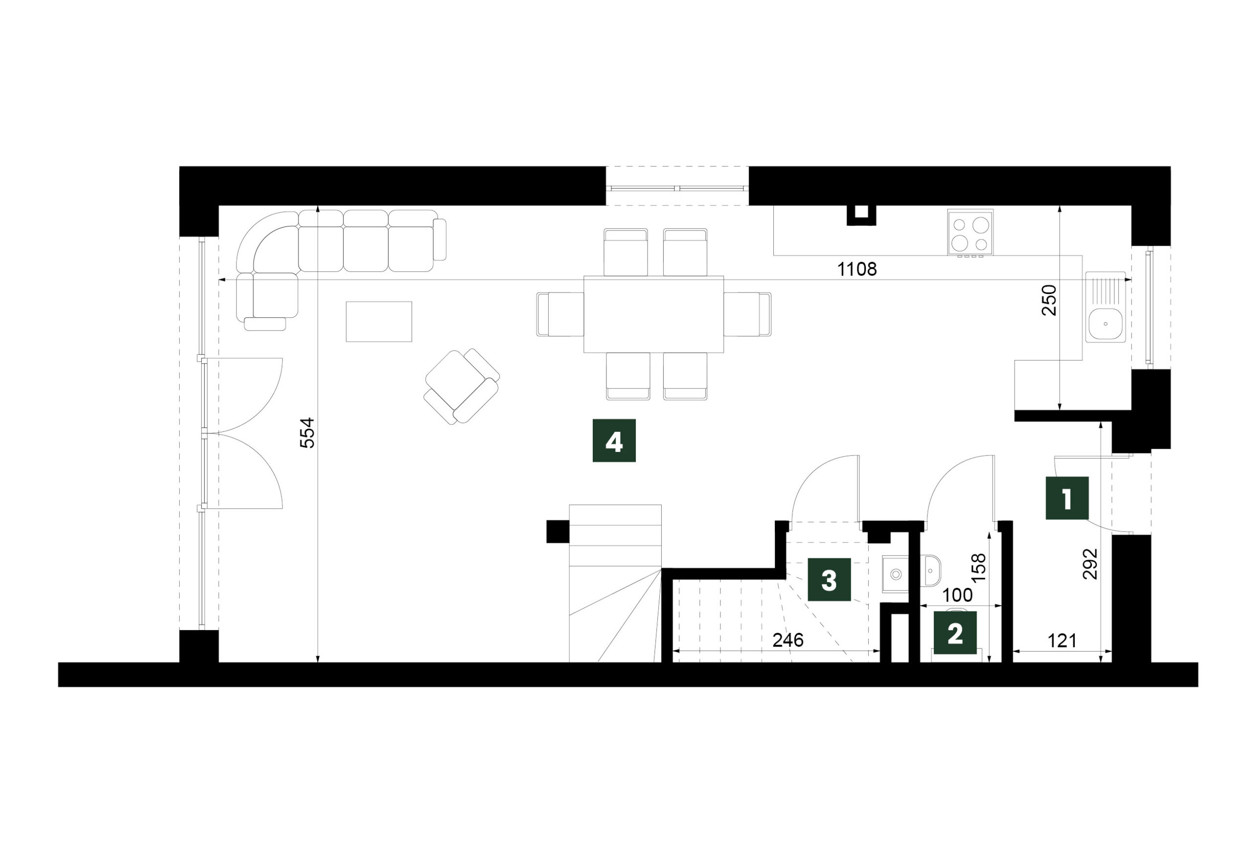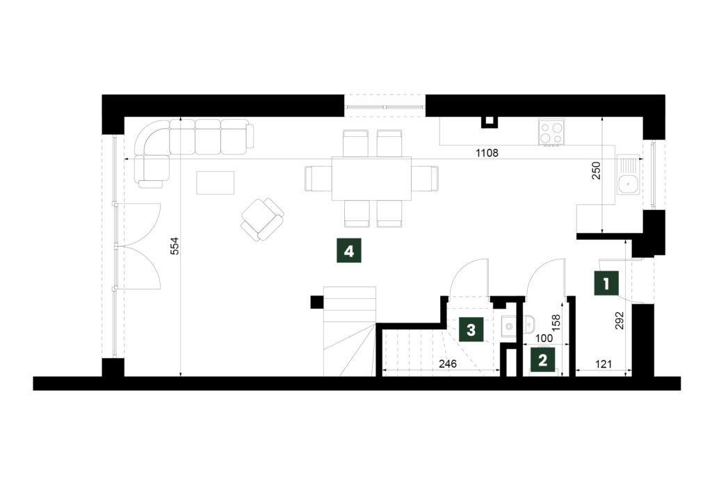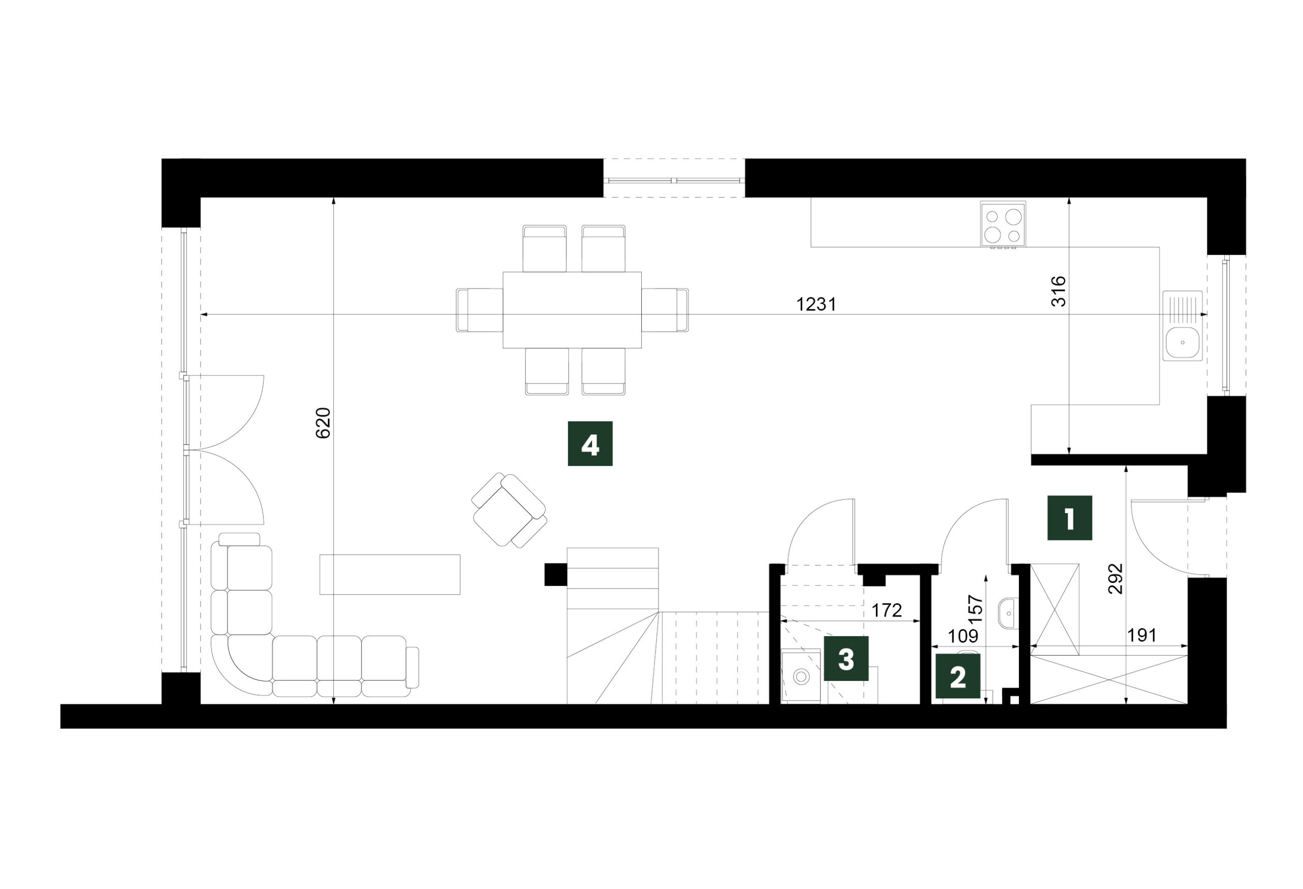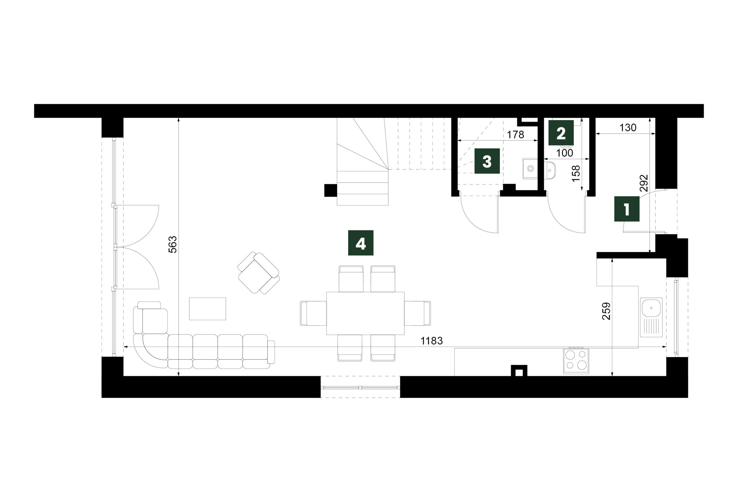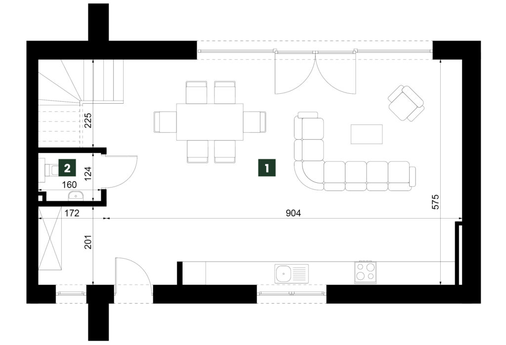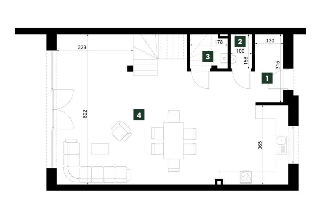 Kluczową ideą projektu jest możliwość kształtowania wnętrza „szytego na miarę” – zarówno układ parteru, jak i piętra może być dostosowany do indywidualnych oczekiwań mieszkańców. Otwarta strefa dzienna, ściany działowe na piętrze czy funkcje pomieszczeń mogą być modyfikowane w szerokim zakresie, przy zachowaniu stałych, zewnętrznych ram architektonicznych budynku.Rozwiń ∨