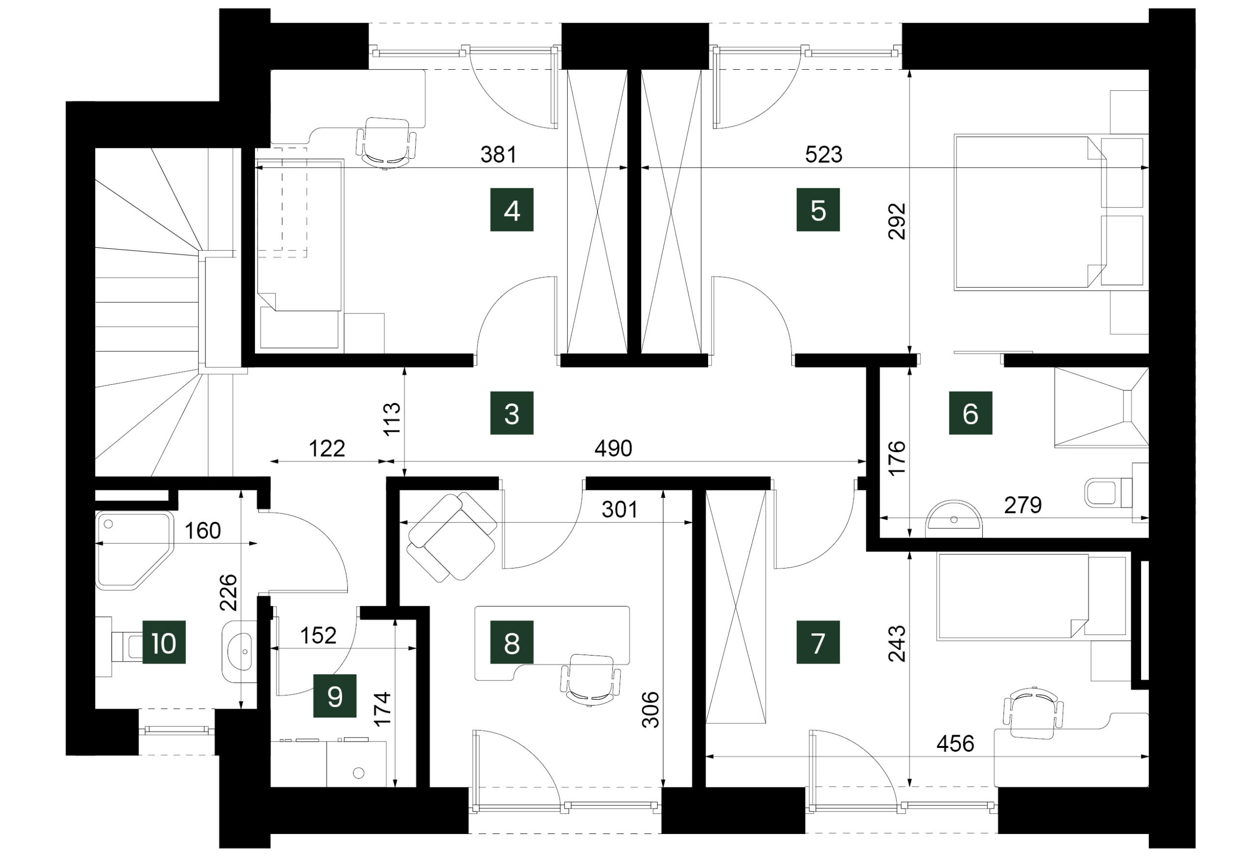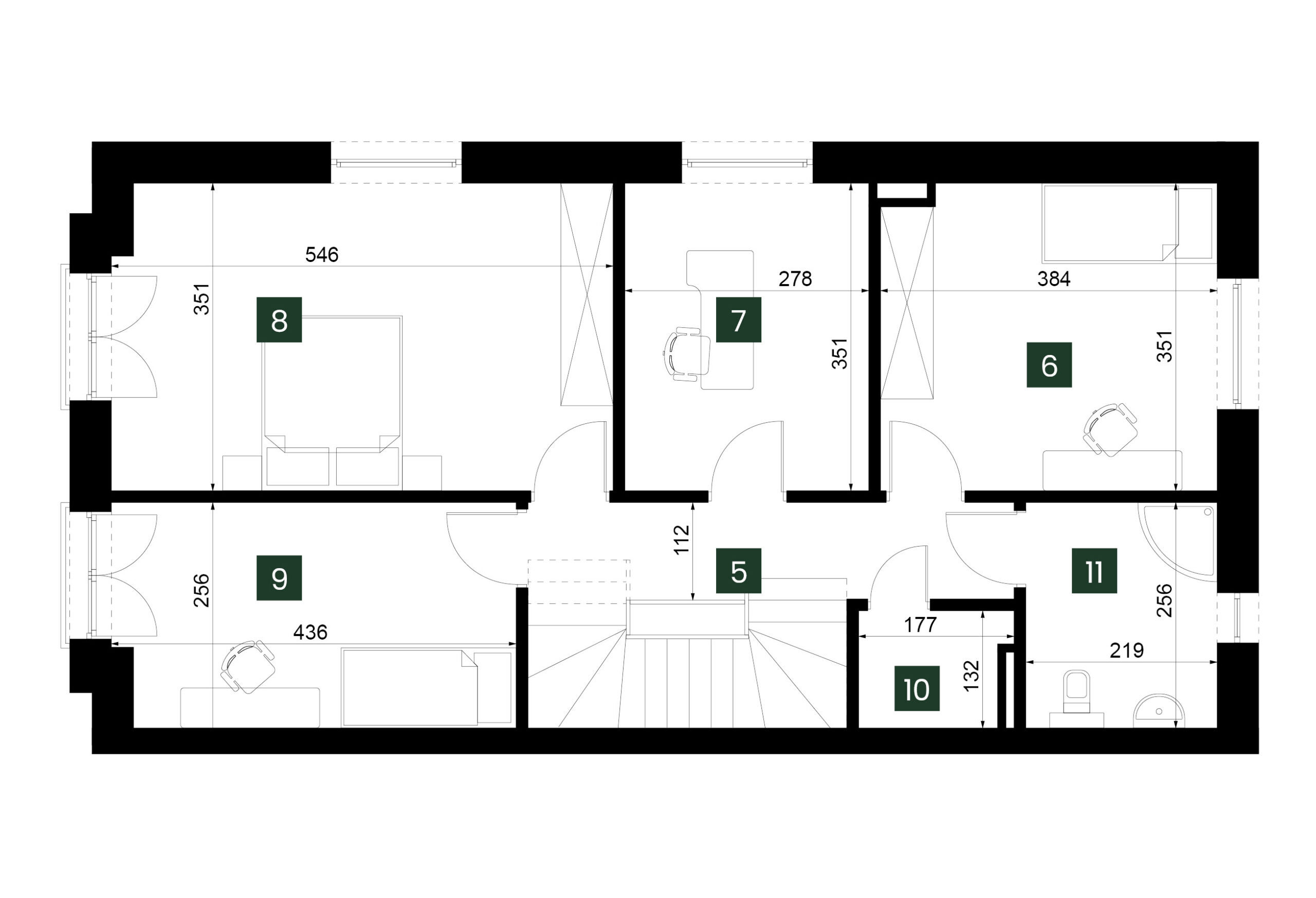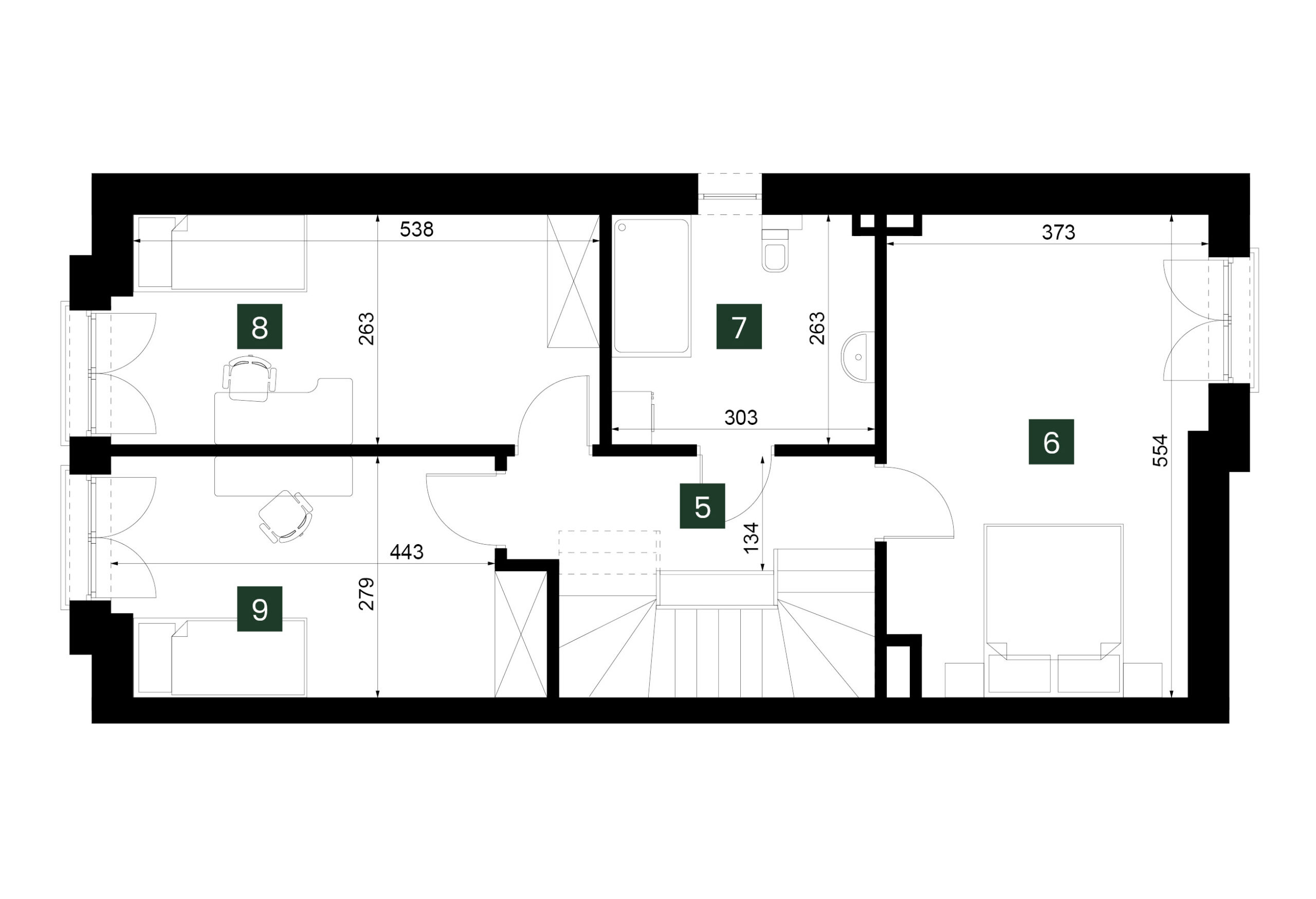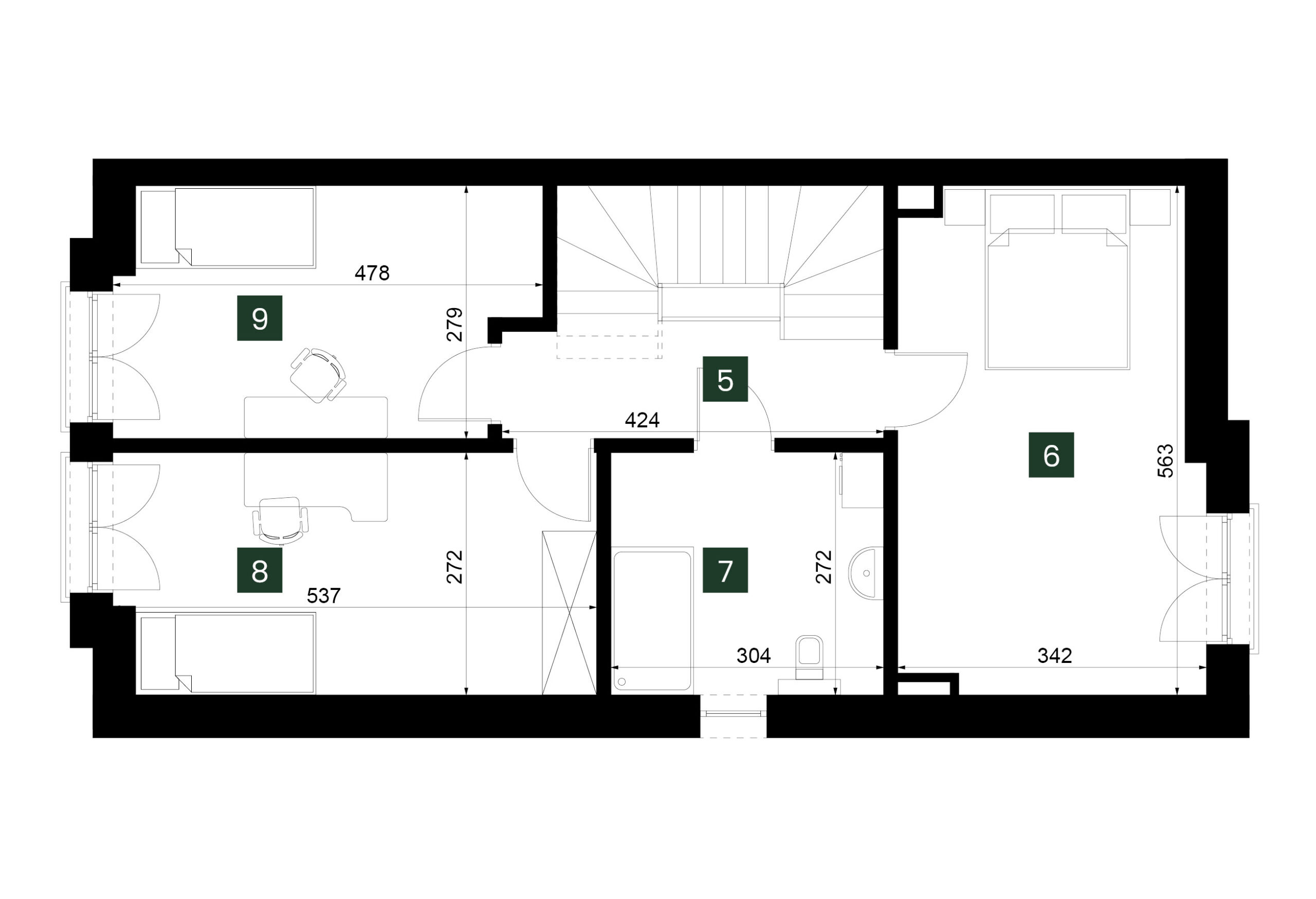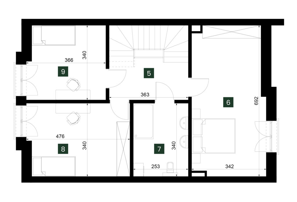 W Scandinavii nie oferujemy sztywnego, zamkniętego układu wnętrz, ale zapewniamy realną możliwość zaprojektowania domu pod konkretne potrzeby mieszkańców. Zarówno strefa dzienna typu open space, jak i układ pomieszczeń na piętrze mogą być swobodnie kształtowane: zmieniane są funkcje pokoi, lokalizacja ścian działowych, wielkość i proporcje przestrzeni, a nawet rozmieszczenie i wymiary przeszkleń. Stałym elementem pozostają jedynie ściany zewnętrzne, natomiast wnętrze może zostać zaprojektowane od podstaw pod indywidualny styl życia – od otwartej, loftowej przestrzeni po bardziej klasyczny, podzielony układ.Rozwiń ∨