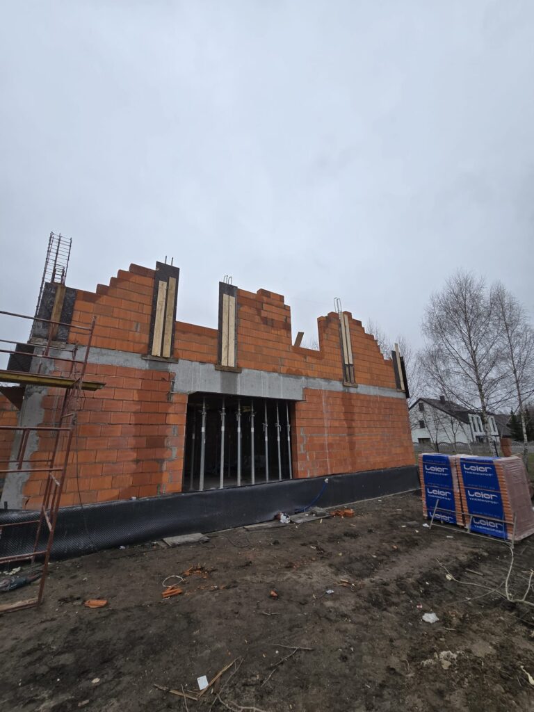 Równolegle rozpoczęliśmy murowanie ścian nośnych piętra w pierwszych budynkach. Z